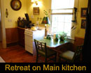 Though The Main House kitchen is, to quote our guests, “to die for”, the Inn has three additional fully equipped kitchens, one in each outer house, for guests' usage. A coffee and tea service area, basket with various packaged snacks, and fridge stocked with bottled water, milk and soda are welcomed amenities. The guest house kitchens have wood flooring and decor is vintage.