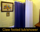 Bath:  Clawfooted tub with a shower.