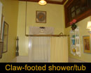Bath: Private. Clawfooted tub with a shower.  Bright and sunny with a large beveled transom.