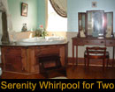 For a relaxing treat, select a guest bedroom offering a Jetted tub for two. Bubble bath and pleasantly scented bath grains made with natural herb ingredients are among the amenities the Inn provides to make your time in the Jetted tub a stress reliever.